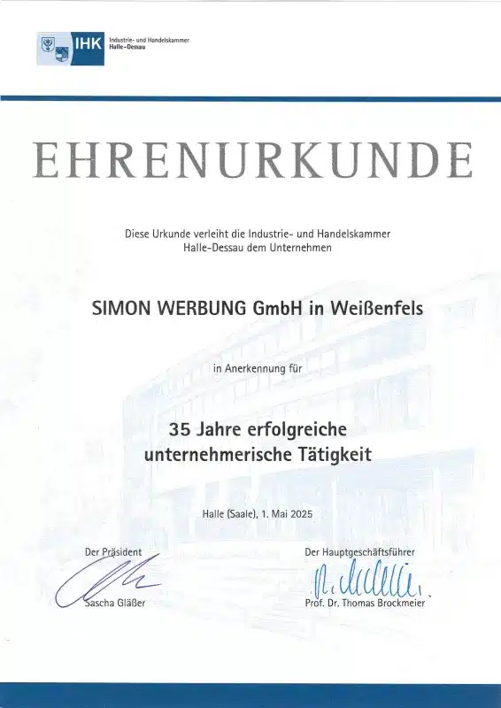 Ehrenurkunde der Industrie- und Handelskammer Halle-Dessau